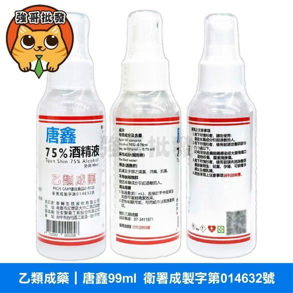 醫強唐鑫 酒精 75%酒精 酒精液 消毒 清潔 乾洗手 99ml