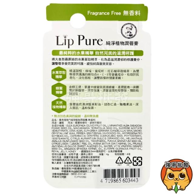 曼秀雷敦Lip Pure 純淨植物潤唇膏 4g 護唇膏 唇膏 護唇 潤唇膏 潤唇