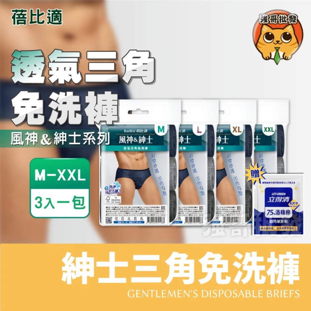 蓓比適-風神紳士彩色三角免洗褲 免洗內褲 男內褲 內褲 拋棄式 三角免洗褲 三角褲 免洗褲 免洗褲 一次性內褲