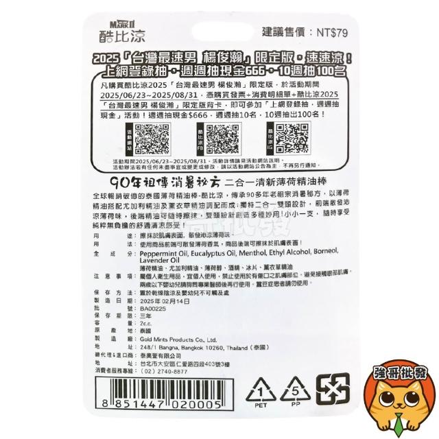 酷比涼 二合一清新薄荷精油棒 2cc 滾珠瓶