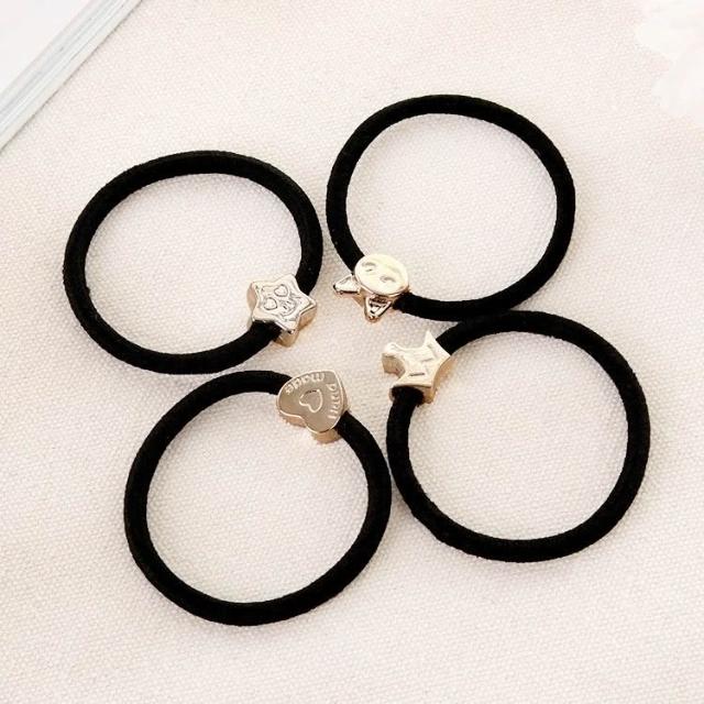 韓版新款黑色造型電鍍髮圈 金屬色髮飾 髮飾 高彈力髮束 高彈力束髮圈 綁頭髮 素面髮圈 綁頭髮髮圈