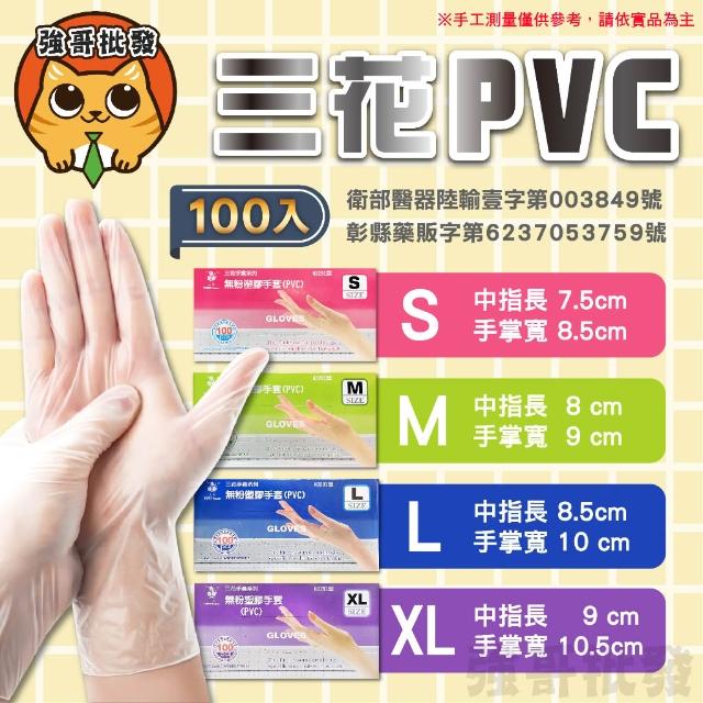 三花無粉塑膠手套PVC 醫用手套 一次性手套 透明手套-S M L XL H3291型 PVC手套