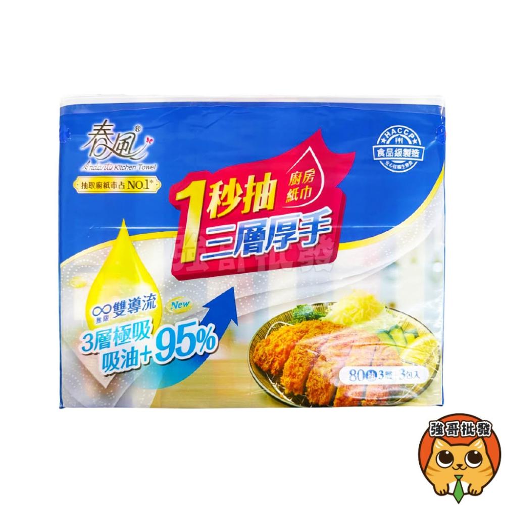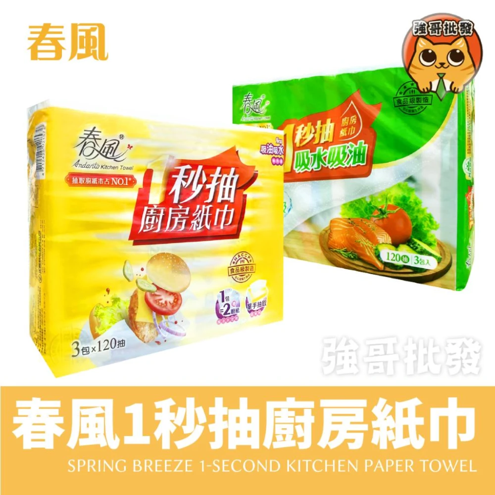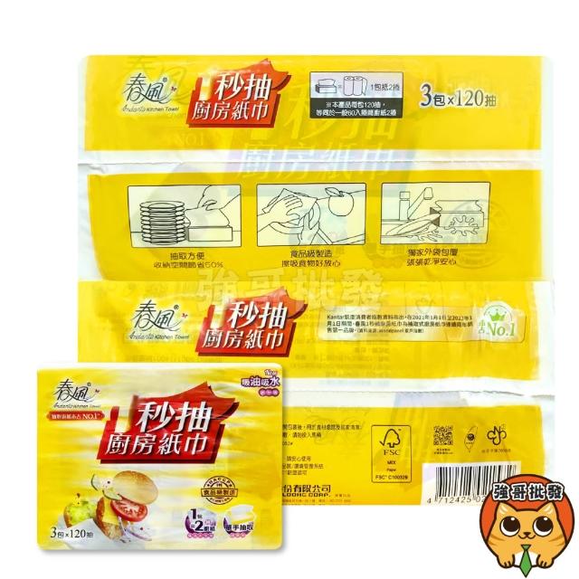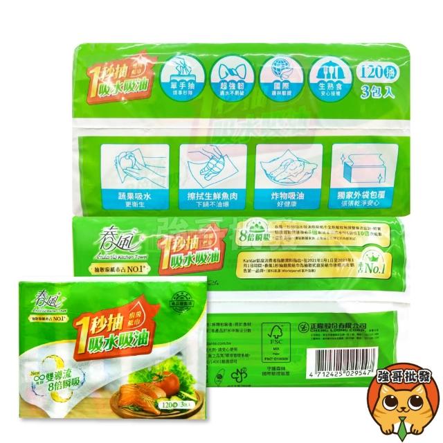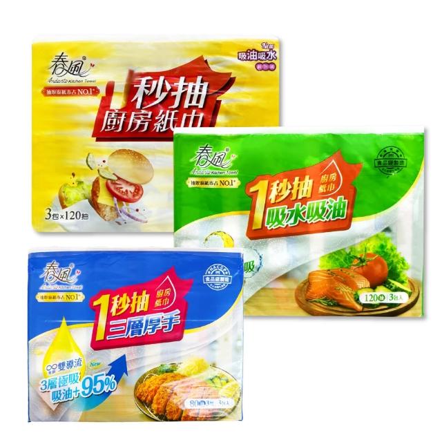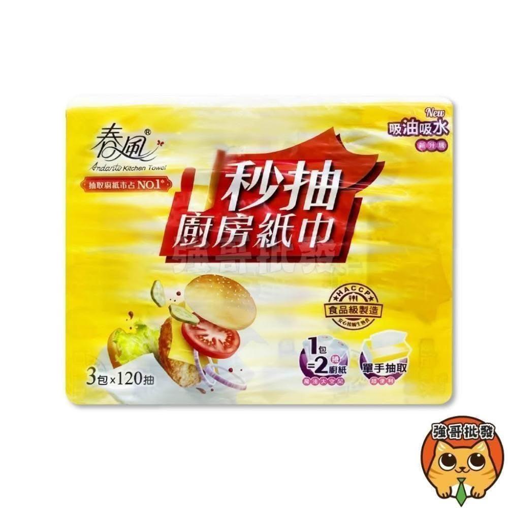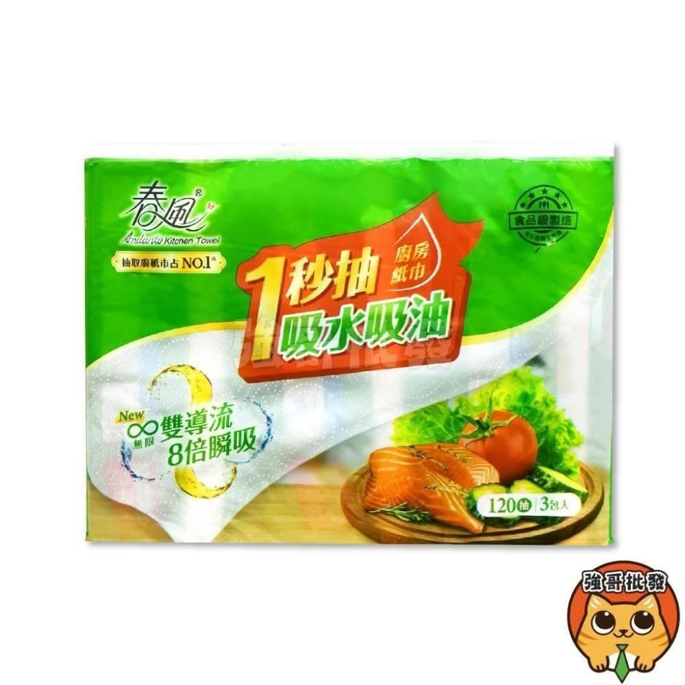 春風1秒抽廚房紙巾 120抽 3包入/袋 廚房紙巾 吸油 吸水 餐巾紙巾 吸油紙巾