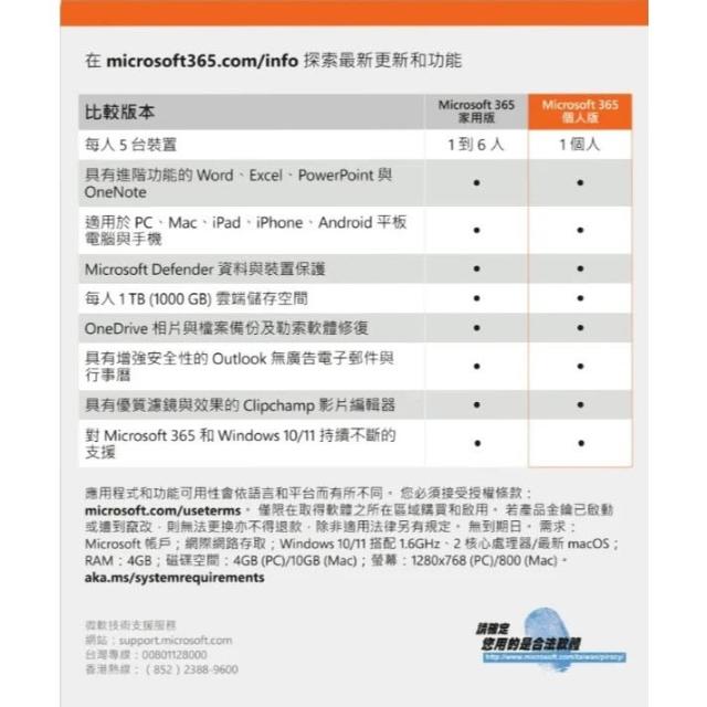 Microsoft 微軟彩盒裝正版 office365 微軟 microsoft office 365 個人版一年盒裝 word / excel/ppt office365 個人版非家用版