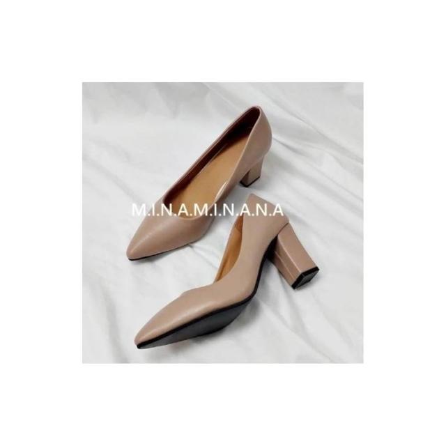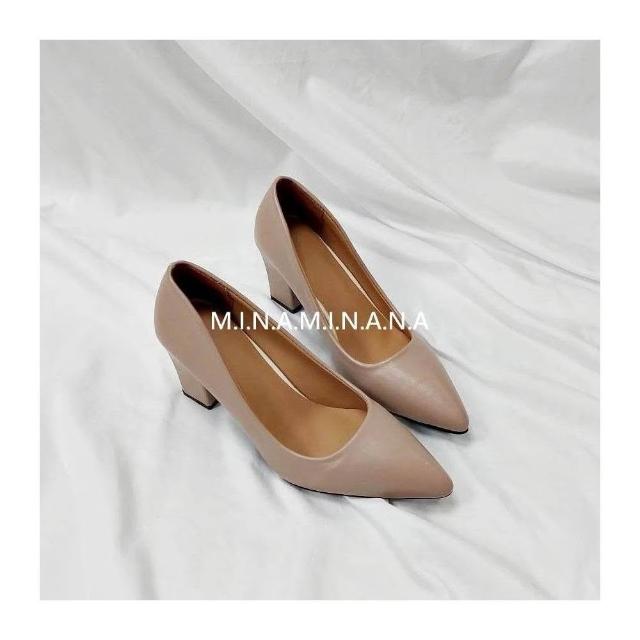 大尺碼純色淺口高跟鞋 婚鞋 伴娘鞋 尖頭高跟鞋 粗跟鞋 高根鞋 通勤鞋 S3678 MINANA女鞋鞋材