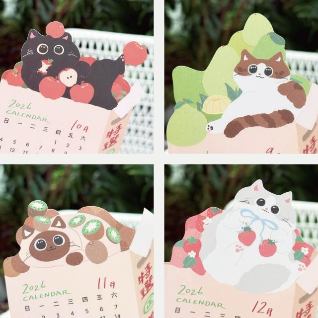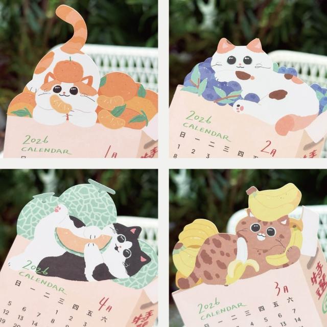 森蕗插畫🌲新款🌲 2026桌曆貓咪水果年曆 水果月曆文創年曆2026月曆2026日曆交換禮物生日禮物