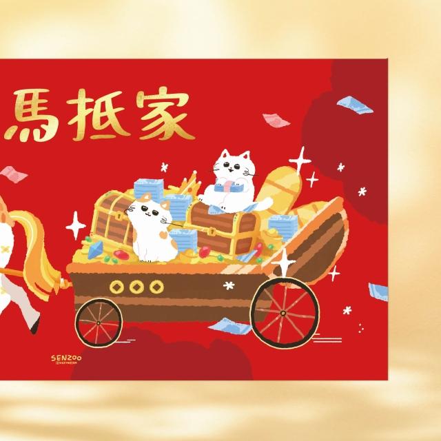 台灣製🔥森蕗插畫🌲2026橫式春聯 豪馬抵家 諧音梗貓咪馬年春聯文創春聯馬創意春聯不傳統春聯2026春聯新年