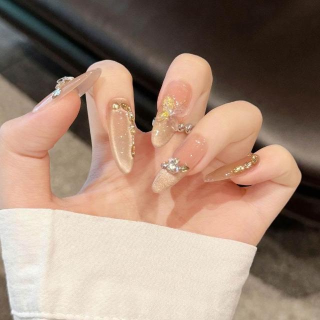 瑞卡曼枯葉蝶純手工穿戴甲高質量氣質香槟法式貓眼輕奢高級美甲假指甲
