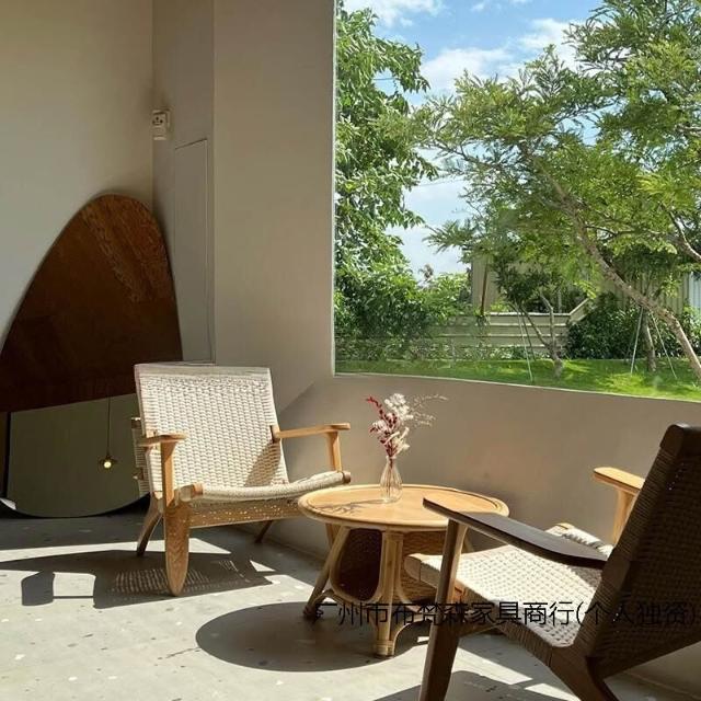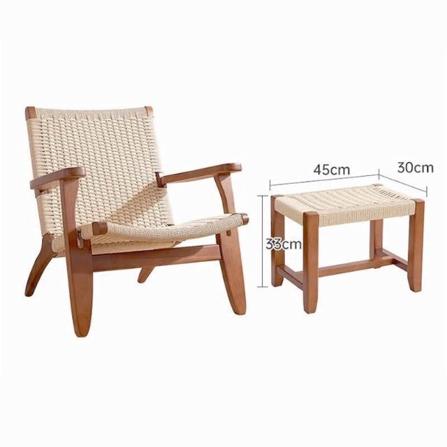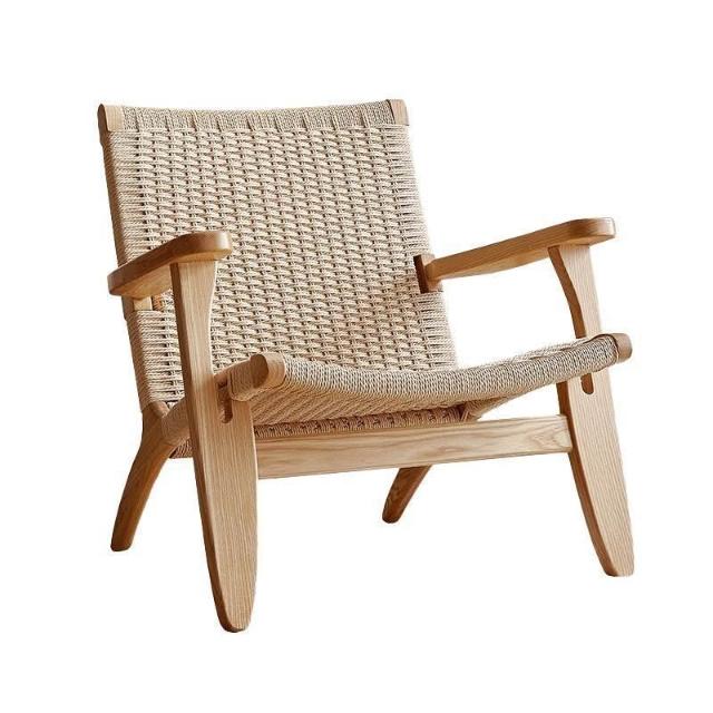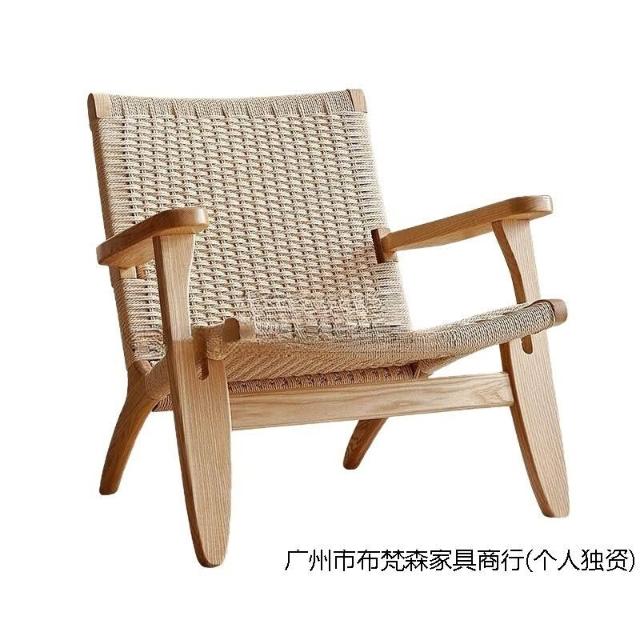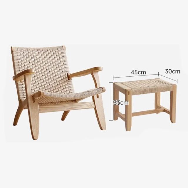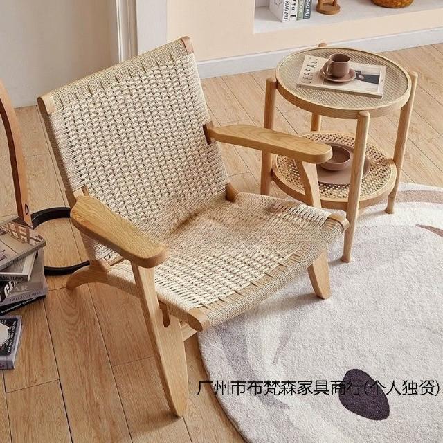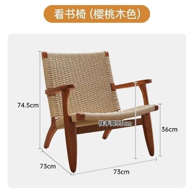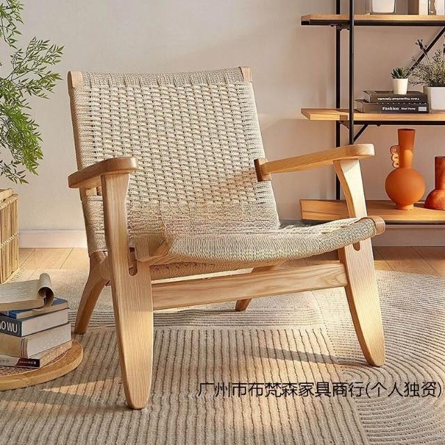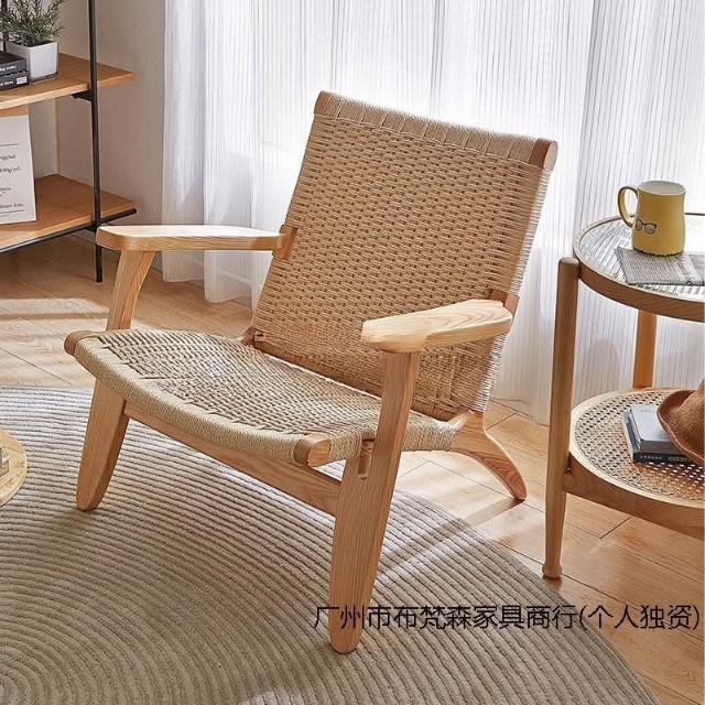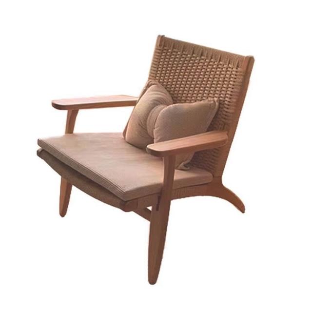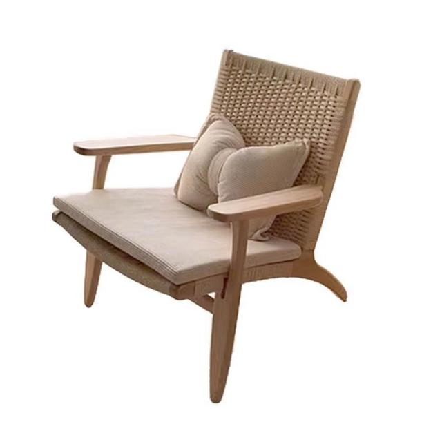 陽臺舒適看書椅子休閑沙發椅閱讀實木日式客廳繩編懶人家