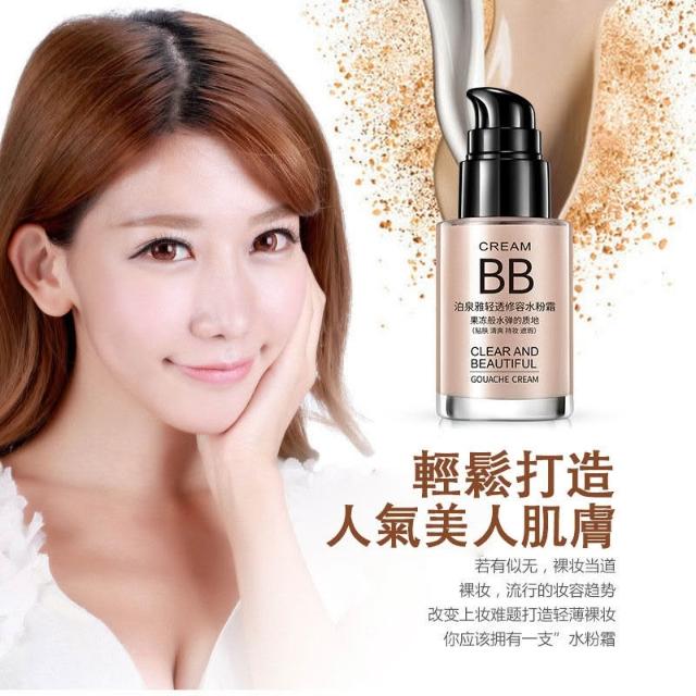 泊泉雅溫和清透水粉霜粉底液 遮瑕補水保濕提亮肌膚隔離cc霜彩妝