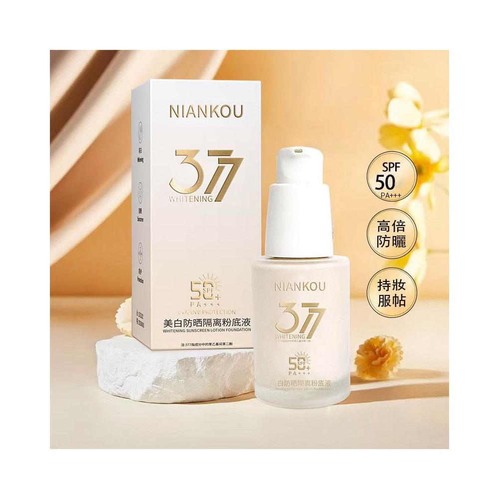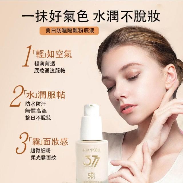 台灣現貨377美白防曬隔離粉底液提亮面部清透妝效滋潤持久不脫妝美白粉底