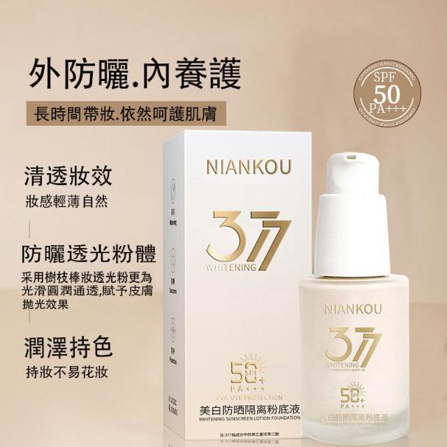 台灣現貨377美白防曬隔離粉底液提亮面部清透妝效滋潤持久不脫妝美白粉底