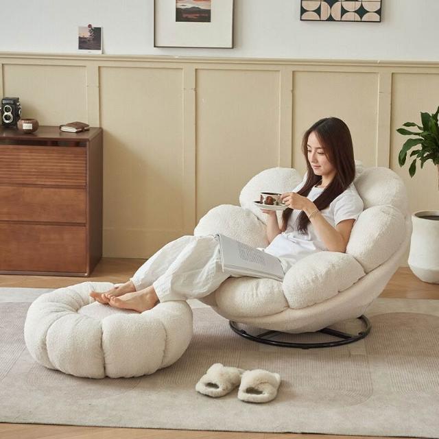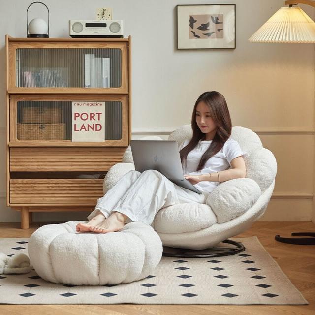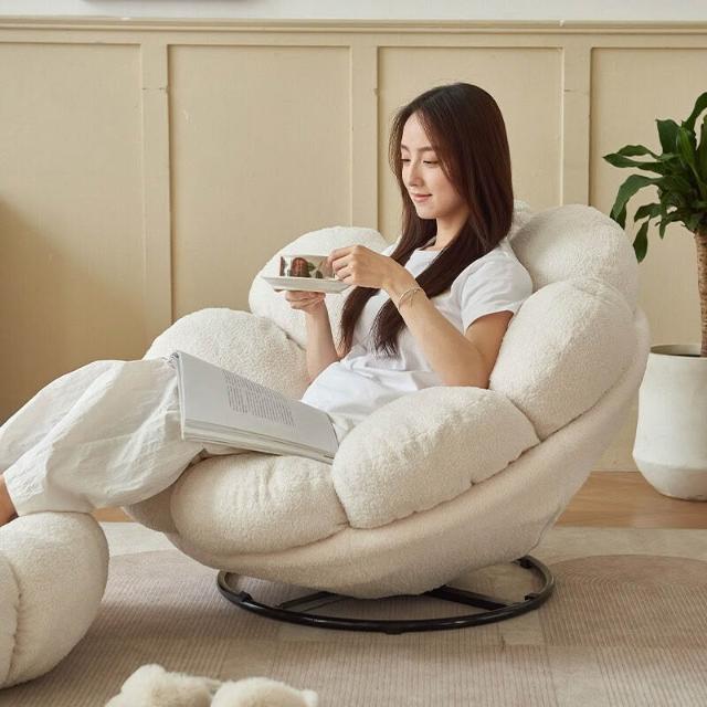 懶人沙發可躺可睡臥室單人沙發椅羊羔絨沙發椅陽臺旋轉休閑椅網紅
