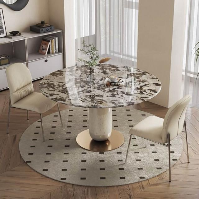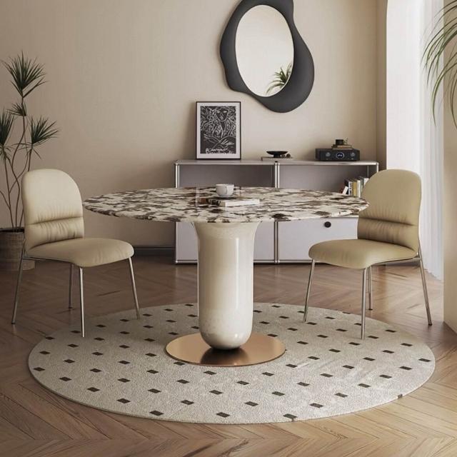 法式輕奢奶油風烤漆大理石餐桌圓形現代簡約小戶型超晶石飯桌