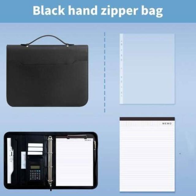 多功能A4文件夾PU皮質活頁拉鏈包辦公商務手提經理夾