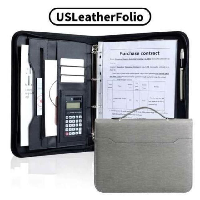多功能A4文件夾PU皮質活頁拉鏈包辦公商務手提經理夾