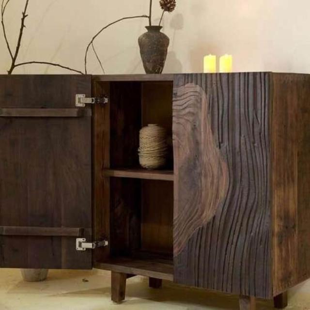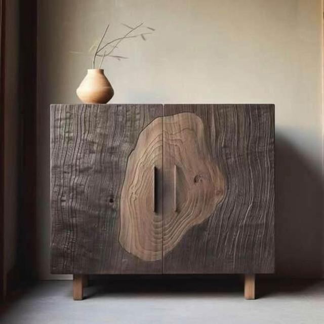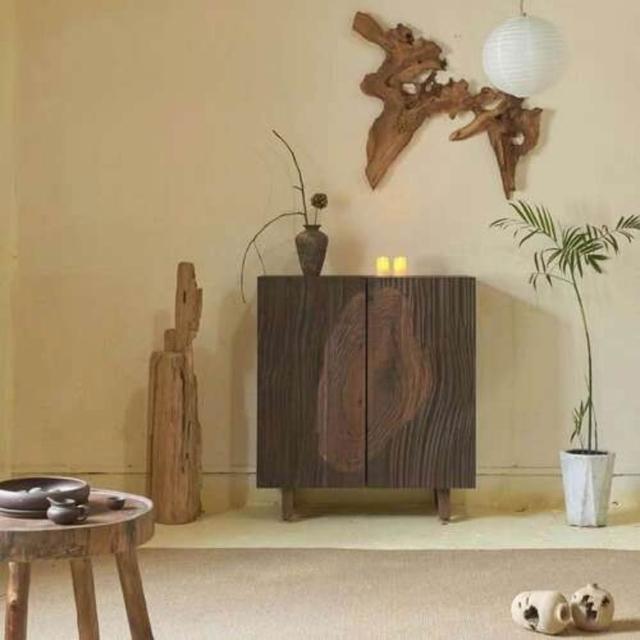 老榆木餐邊櫃實木創意儲物櫃侘寂風雙開門茶水櫃藝術玄關櫃