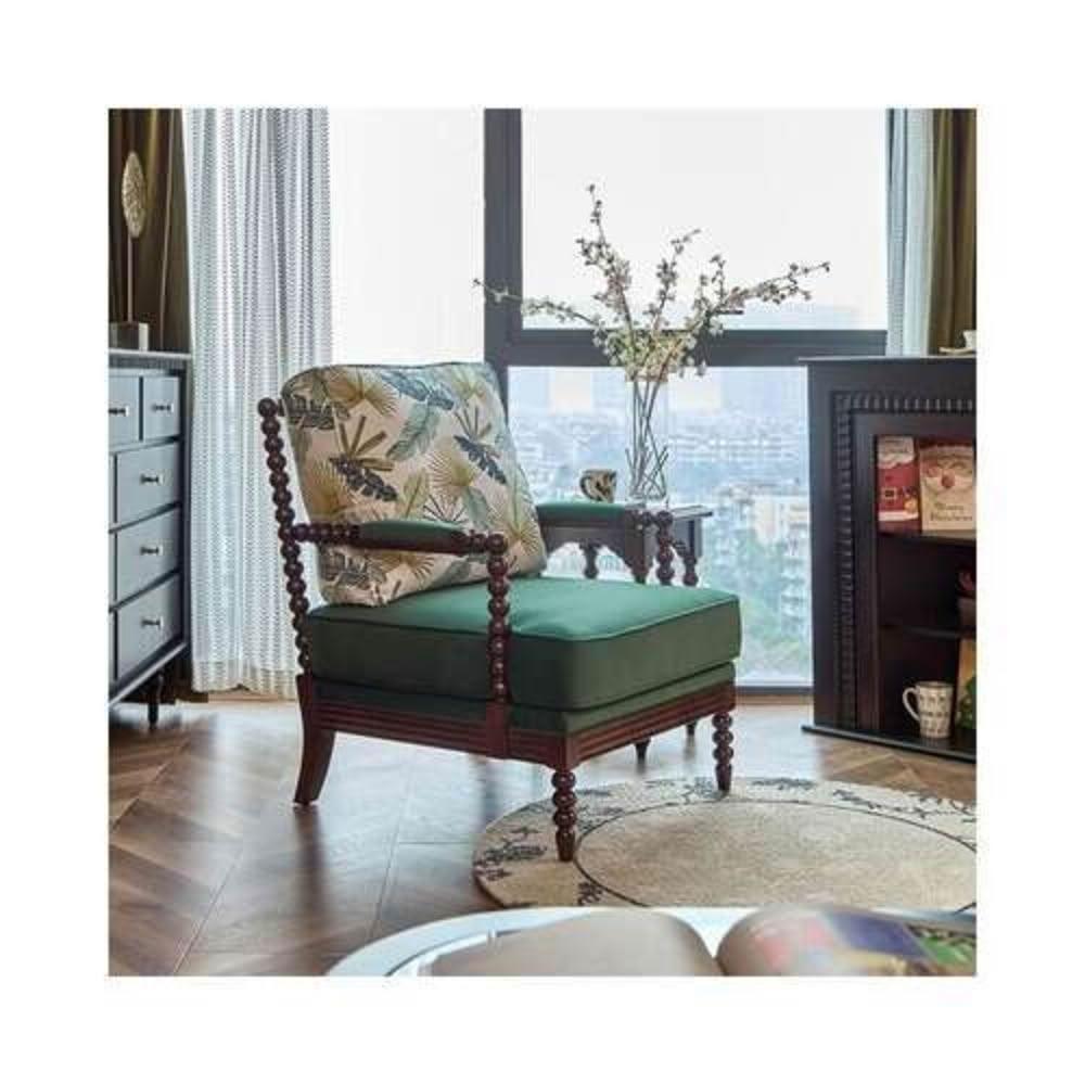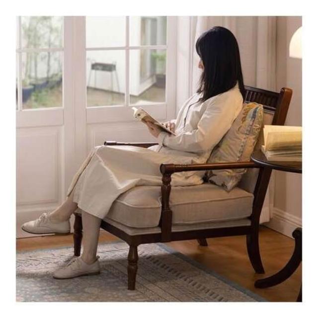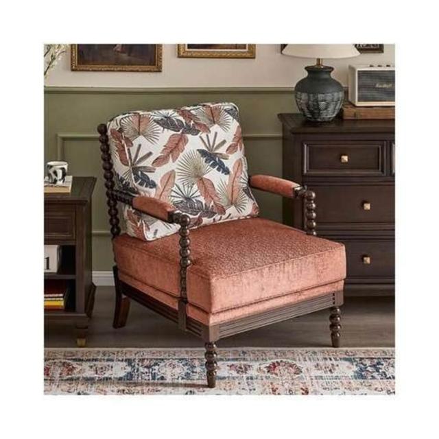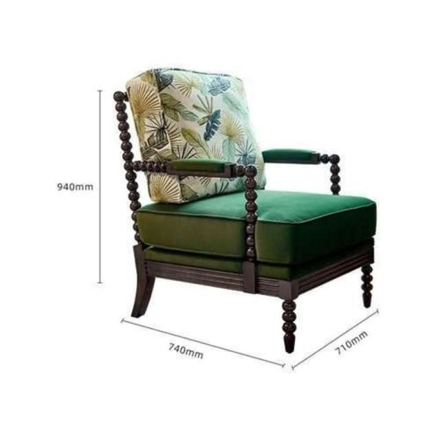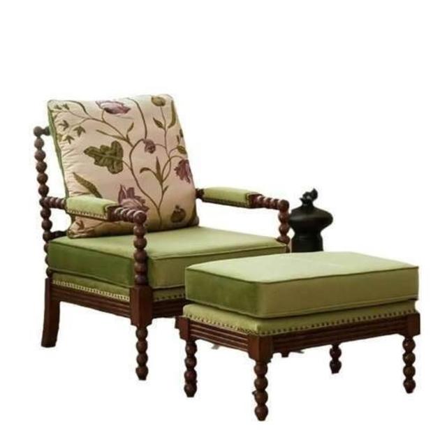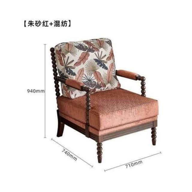 法式酋長椅實木布藝單人沙發客廳陽臺扶手休閑椅美式懶人躺椅