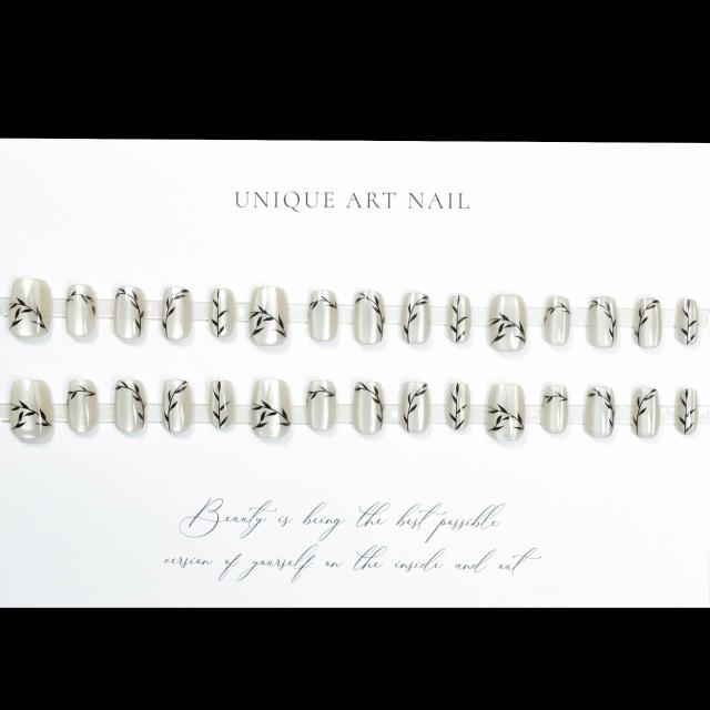 30片新中式竹葉貓眼穿戴甲假指甲片短款ins顯白美甲片可拆卸