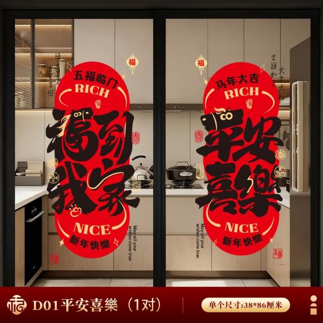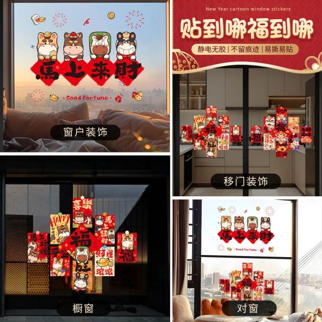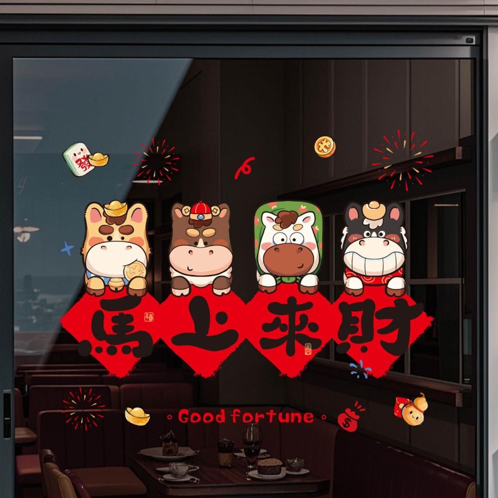 2026新年玻璃門窗花馬年靜電貼紙元旦春節裝飾福字貼玻璃貼櫥窗貼(2個起賣)