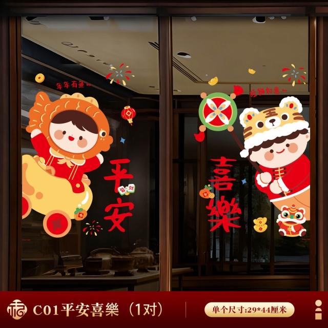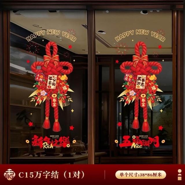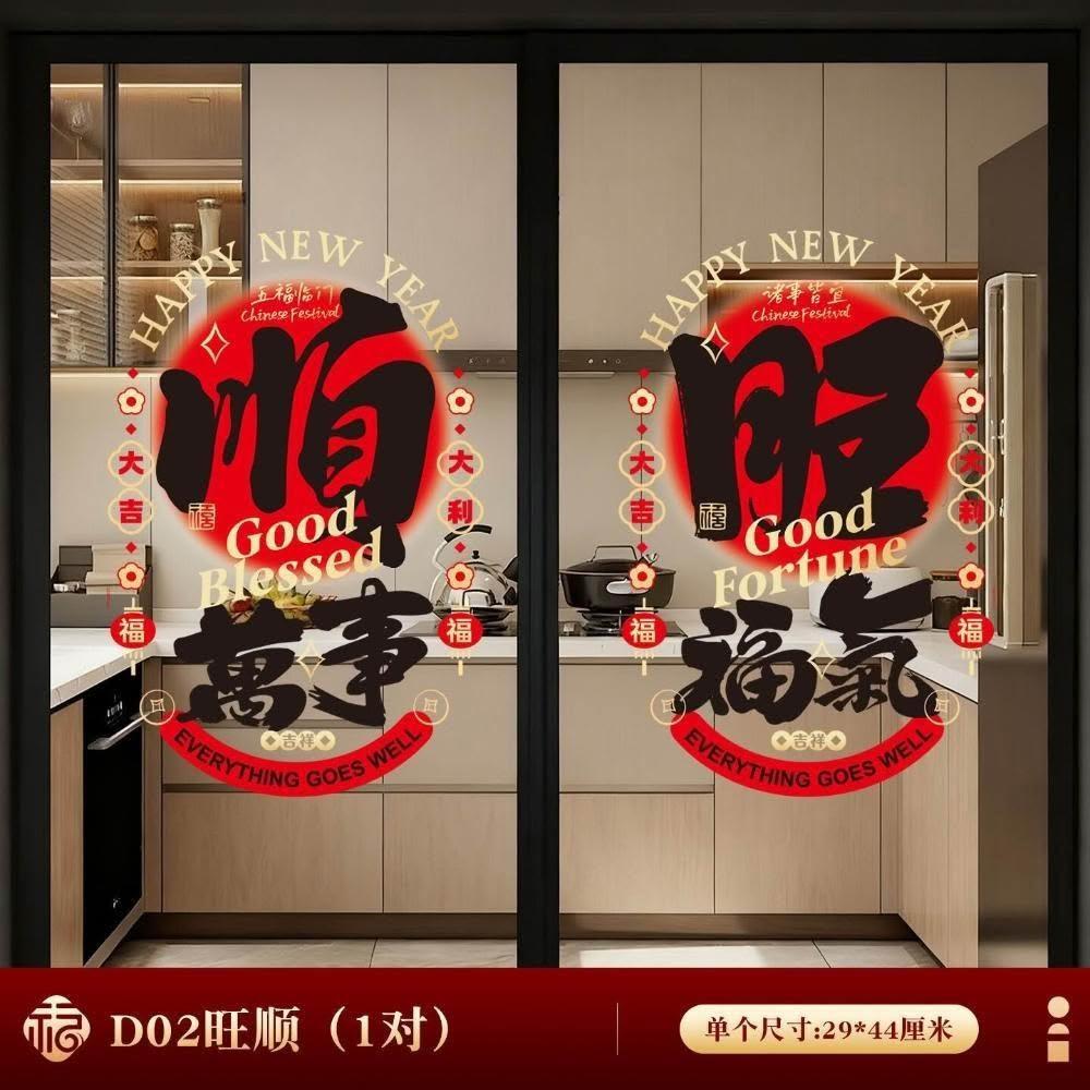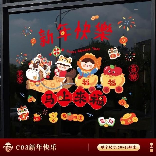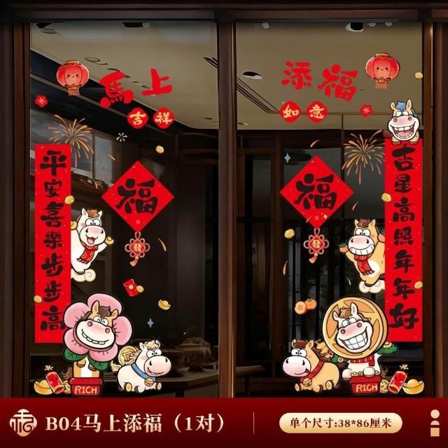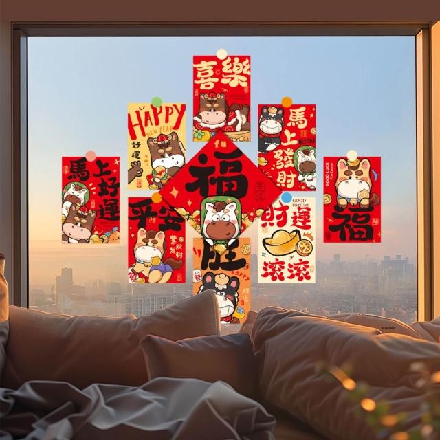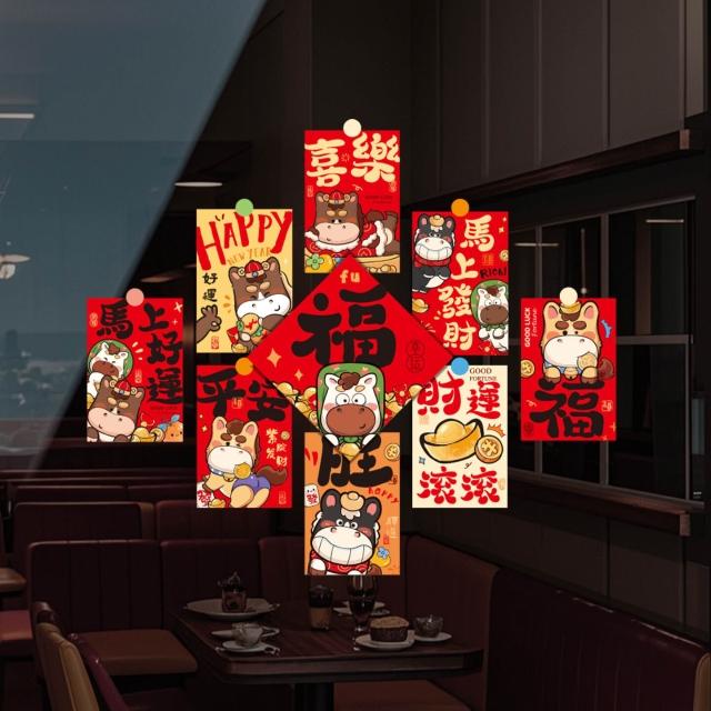 2026新年玻璃門窗花馬年靜電貼紙元旦春節裝飾福字貼玻璃貼櫥窗貼(2個起賣)