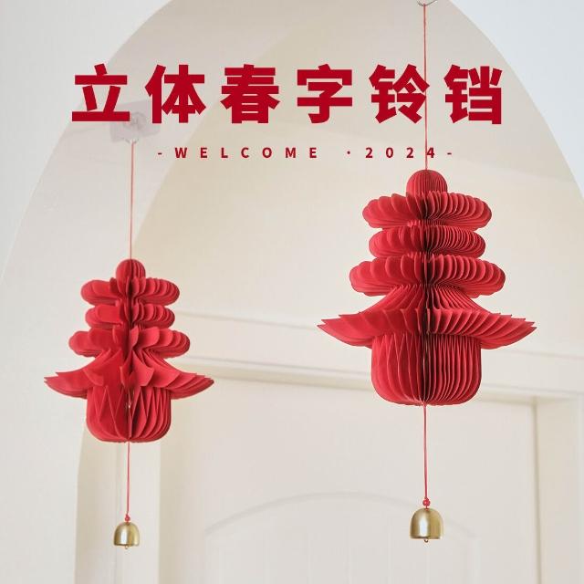 2件起賣 立體春字蜂窩新年元旦春節裝飾吊飾喜慶燈籠鈴铛掛件新家喬遷裝飾