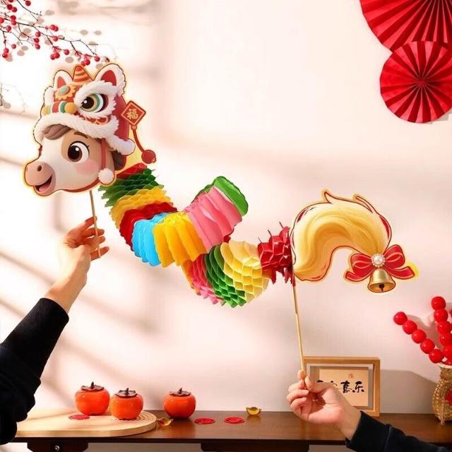 2026元旦春節舞馬拉花新年會表演剪紙手提燈籠裝飾幼兒園拍照道具
