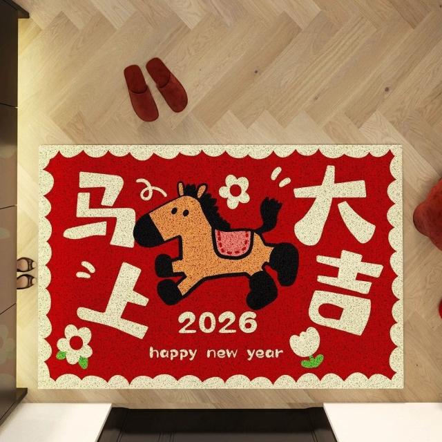 2026馬年地墊入戶門墊玄關換鞋區腳墊可裁剪防滑墊紅色入戶門地墊