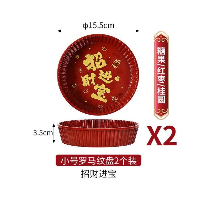 (2個起購)喬遷之喜紅色婚慶盤子過年零食盤點心盤家用客廳布置喜慶新年果盤