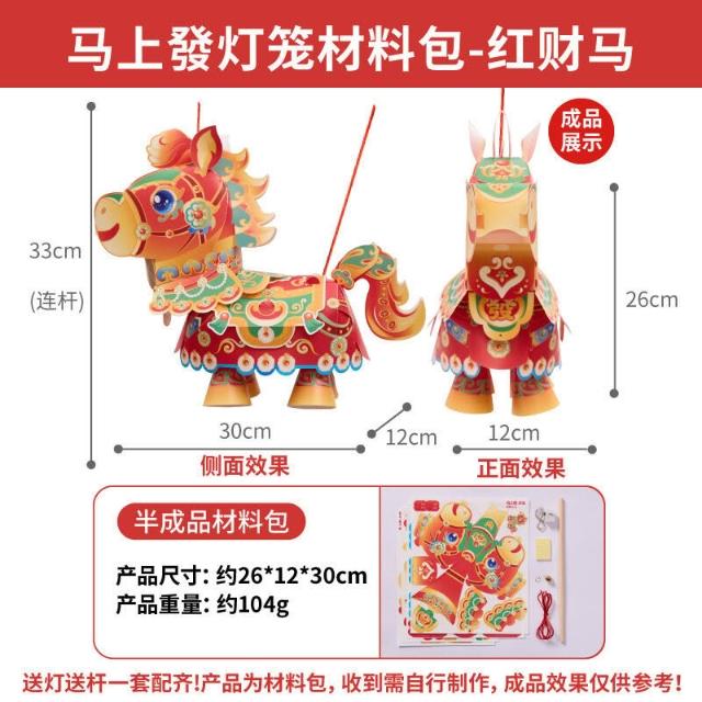 (2件起購)馬年元宵醒獅燈籠diy手工兒童動手製作材料包春節燈籠兒童手提燈