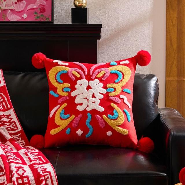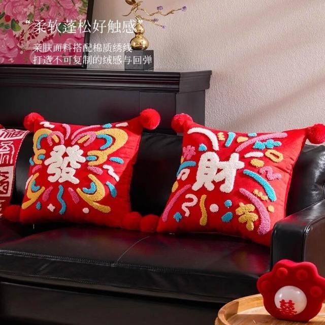 新年紅色喜慶抱枕客廳沙發靠墊套高級感生日送禮靠枕春節馬年禮物