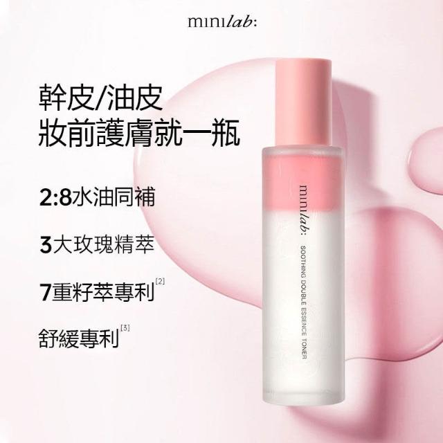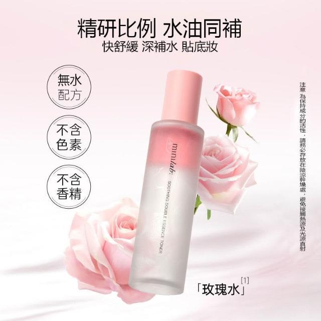 minilab舒緩雙萃精華水光感服帖保濕不卡粉舒緩清爽補水玫瑰
