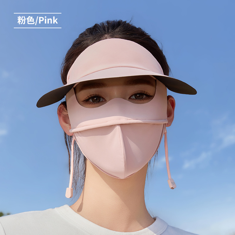 新款防曬口罩臉基尼黑膠帽檐夏季遮陽防紫外線全臉冰絲防曬面罩女
