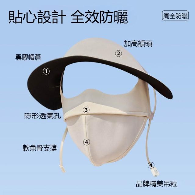 新款防曬口罩臉基尼黑膠帽檐夏季遮陽防紫外線全臉冰絲防曬面罩女