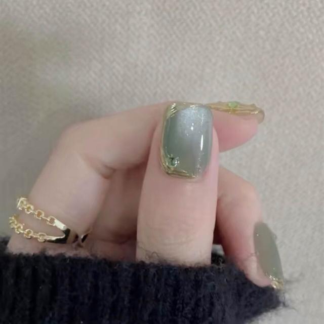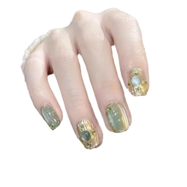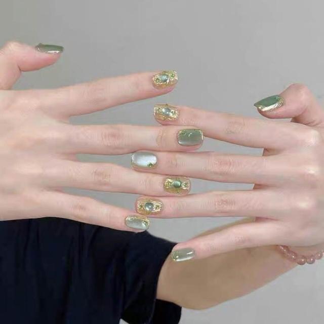 綠色布契拉提葡萄綠鉆法式純手工穿戴甲美甲片高級氣質