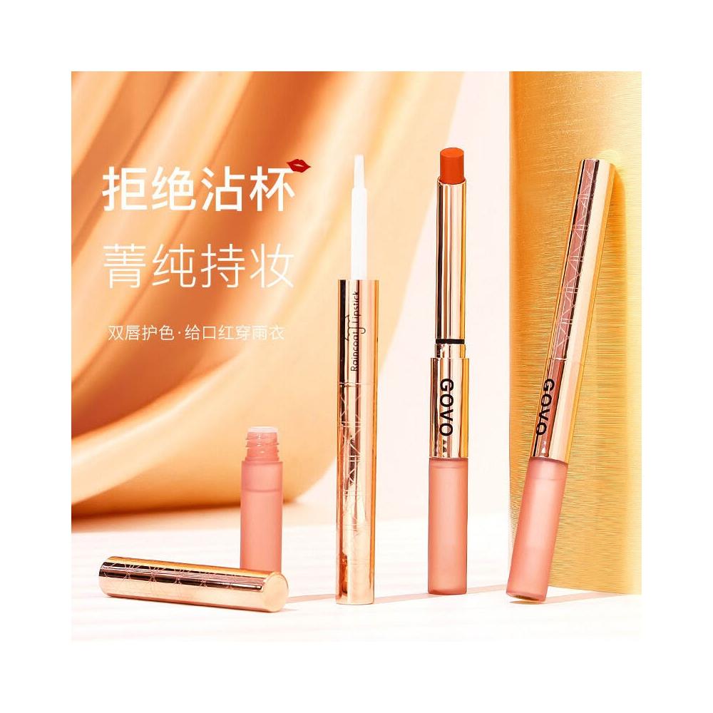 GOVO菁純持妝 雙頭 雨衣細跟口紅不掉色不沾杯持久 防水美妝