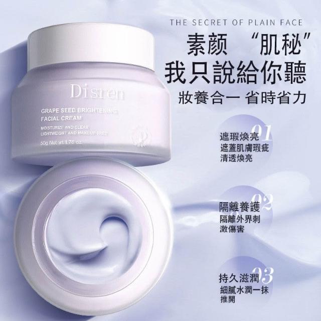 Disren葡萄籽透亮素顏霜輕薄自然0妝感懶人面霜男女