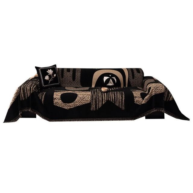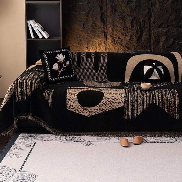 輕奢高級感沙發蓋布四季通用現代簡約黑色沙發巾一整張全蓋套罩毯