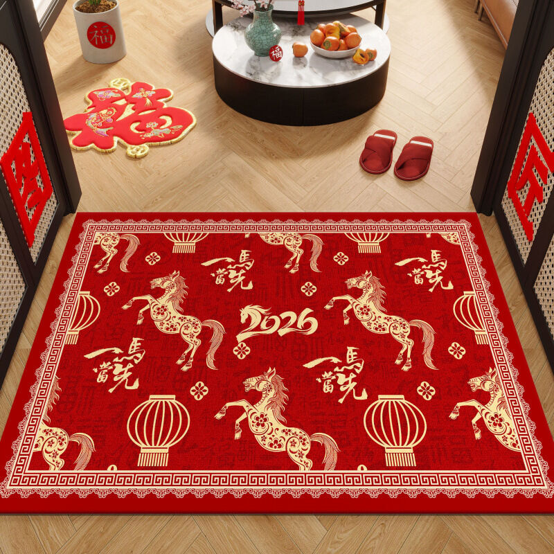 新中式2026馬年玄關入戶門口地墊喜慶家用防滑腳墊紅門墊進門地毯