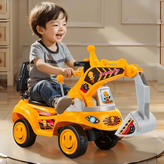 兒童挖掘機可坐人挖土機男孩玩具1到3歲可騎溜溜扭扭車滑行工程車