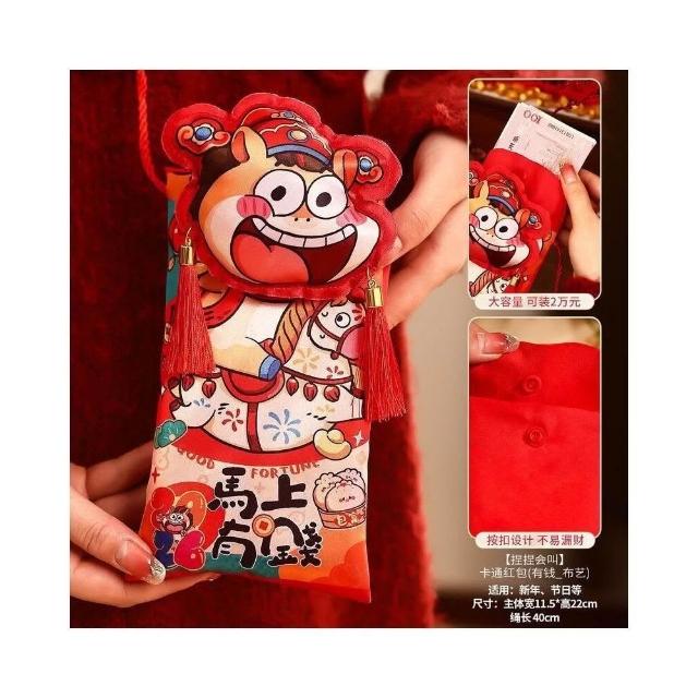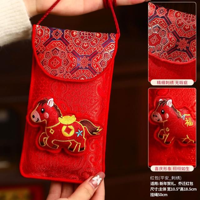 (3個起賣)2026馬年新款刺繡布藝紅包袋春節過年兒童萬元壓歲錢新年利是封包