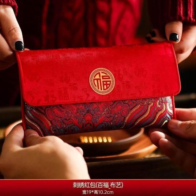 (3個起賣)2026馬年新款刺繡布藝紅包袋春節過年兒童萬元壓歲錢新年利是封包
