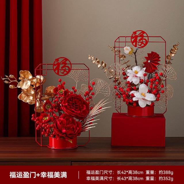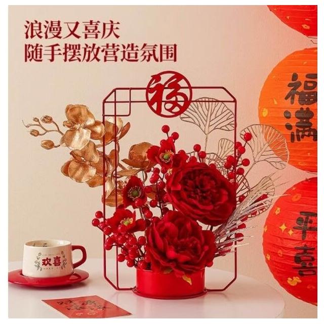 2026新年裝飾發財紅果仿真花假花擺設客廳喬遷新居擺件春節年宵花