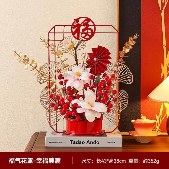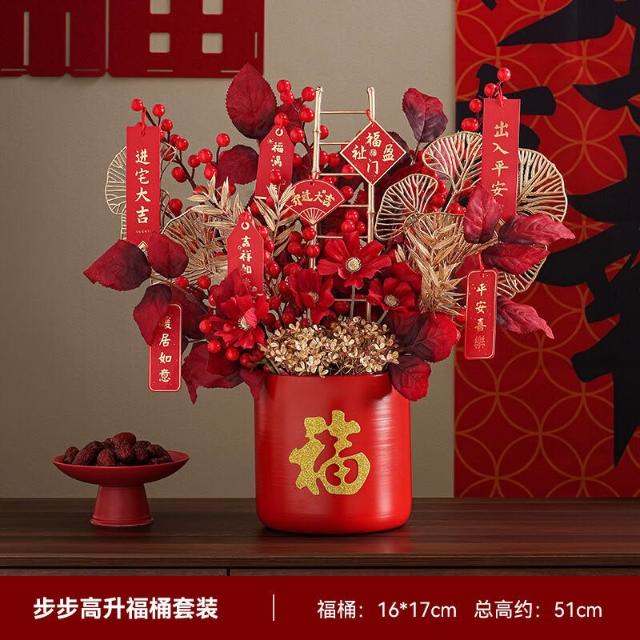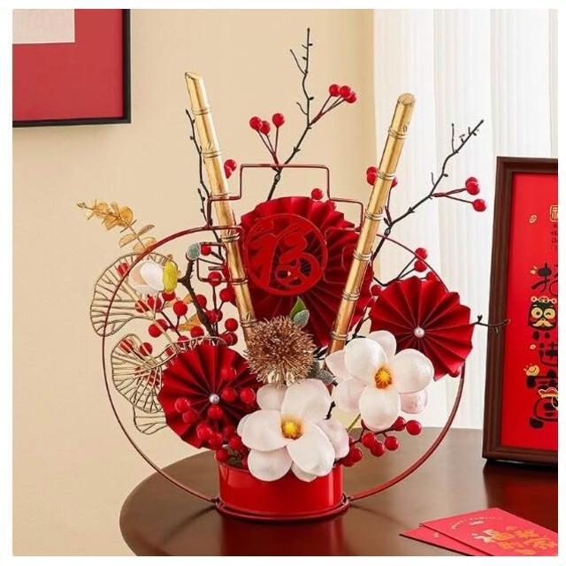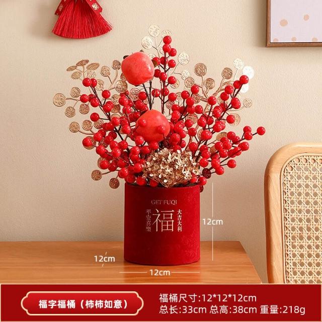 2026新年裝飾發財紅果仿真花假花擺設客廳喬遷新居擺件春節年宵花