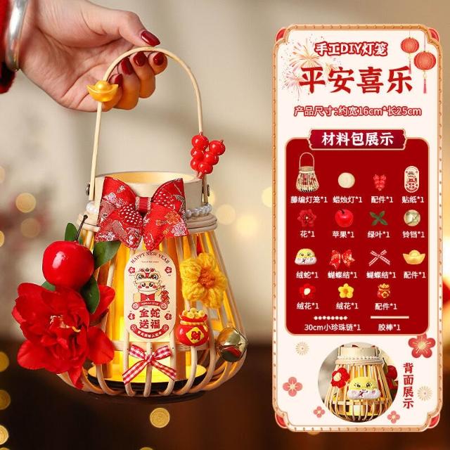2026新年手提藤編燈籠掛飾福字花燈扭扭棒手工春節喜慶布置道具