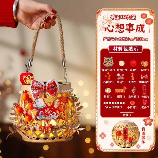 2026新年手提藤編燈籠掛飾福字花燈扭扭棒手工春節喜慶布置道具