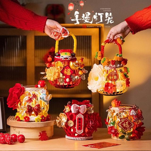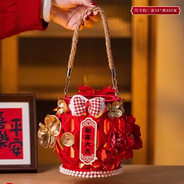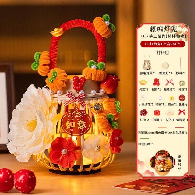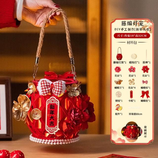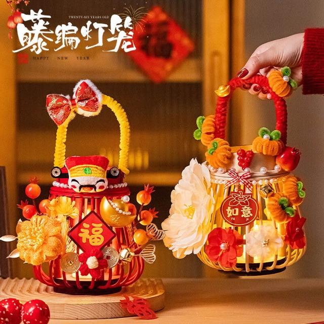 2026新年手提藤編燈籠掛飾福字花燈扭扭棒手工春節喜慶布置道具
