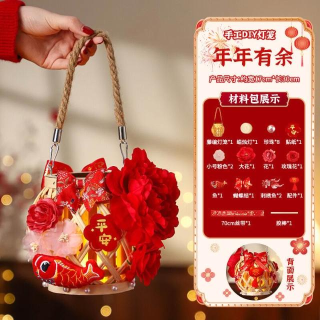 2026新年手提藤編燈籠掛飾福字花燈扭扭棒手工春節喜慶布置道具