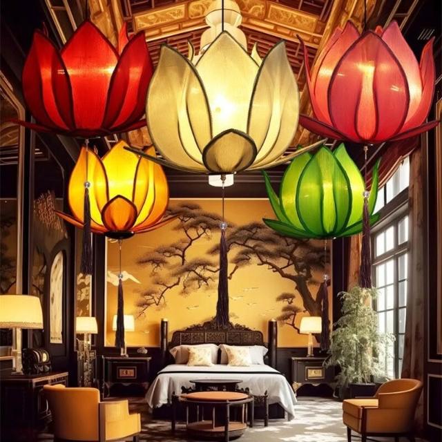 復古蓮花燈籠東南亞酒店餐飲燈籠佛堂寺廟禅意吊燈禮佛燈籠禅意風