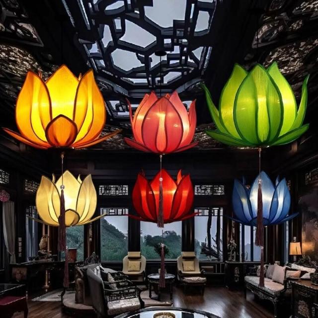 復古蓮花燈籠東南亞酒店餐飲燈籠佛堂寺廟禅意吊燈禮佛燈籠禅意風
